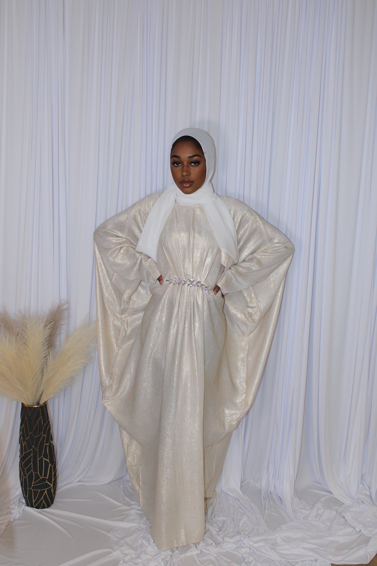 The Sabreen Kaftan exudes elegance with a dressy design and a stunning diamond center jewel. Perfect for formal events, this kaftan will make you stand out in the most sophisticated way. Its intricate detailing and luxurious fabric will make you feel like a true fashion expert.